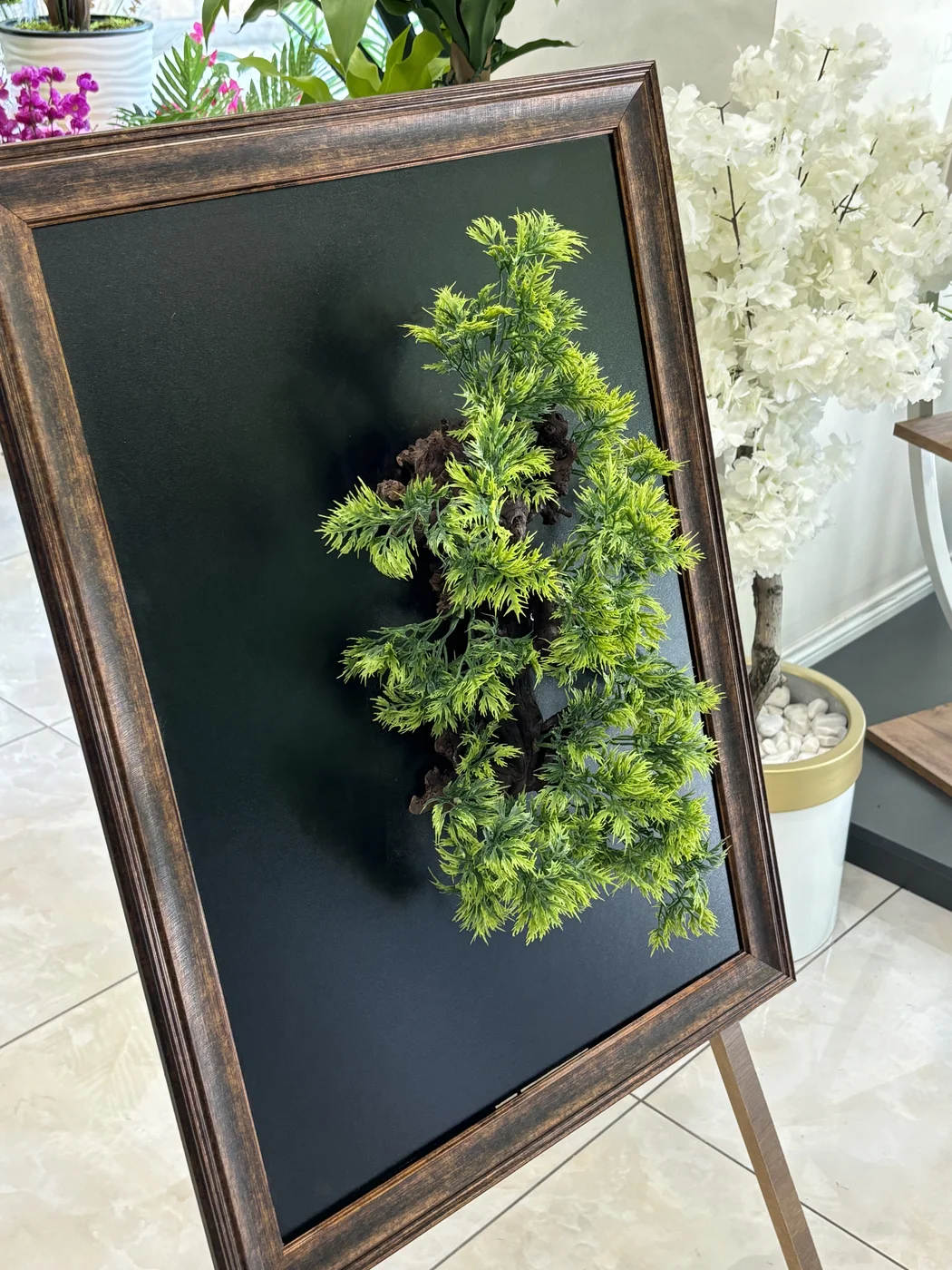 Her mekana uygun farklı boyut ve tarzlarda yapay bitkiler ile hazırlanan tablo koleksiyonumuz, profesyonel tasarım ekibimiz tarafından titizlikle oluşturulur. Kurumsal projeleriniz için şık ve prestijli seçenekler sunuyoruz.